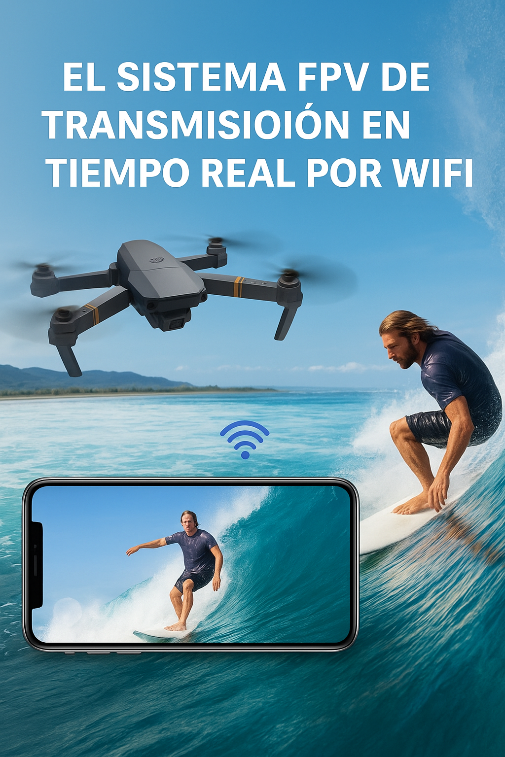 Tiene un alcance de hasta 100 metros, ofreciendo gran libertad para capturar diferentes perspectivas.